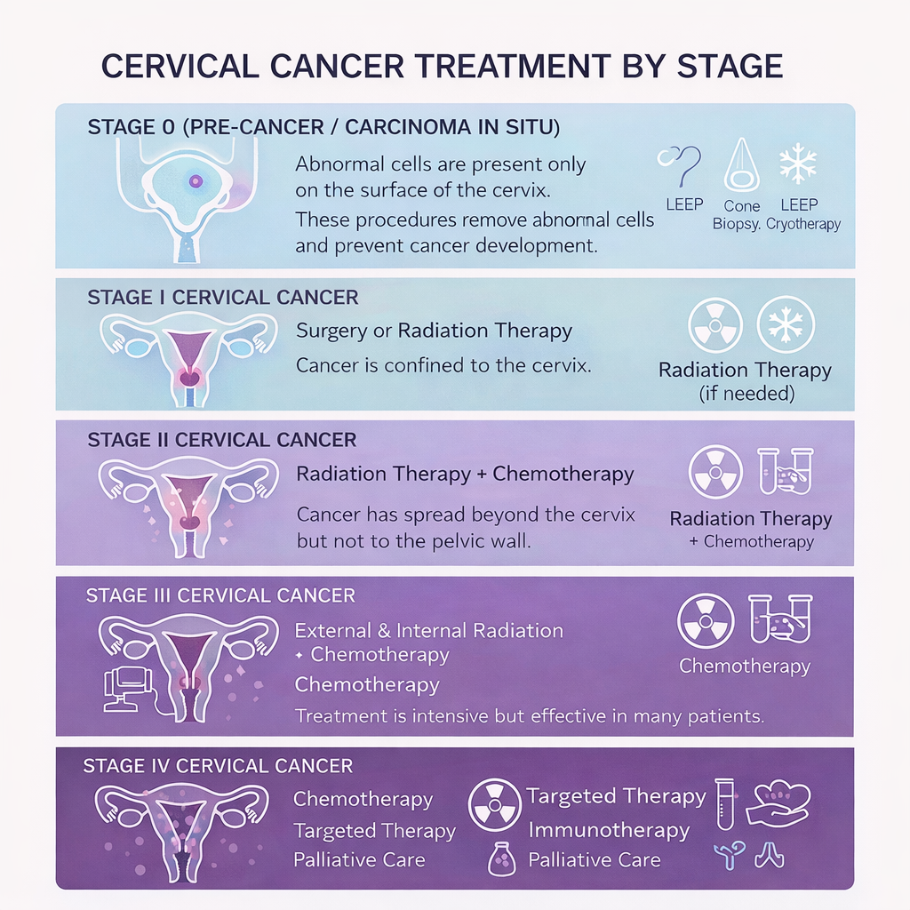 A cervical cancer diagnosis often brings many questions and fears. One of the first things doctors look at is the stage of the cancer, because treatment is not the same for everyone. Some women need only minor procedures, while others require a combination of therapies.