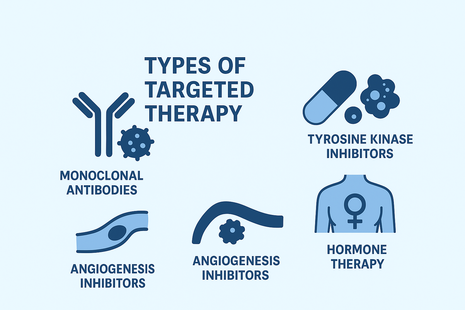 There are several types of targeted therapy, each designed to target specific aspects of cancer cells: